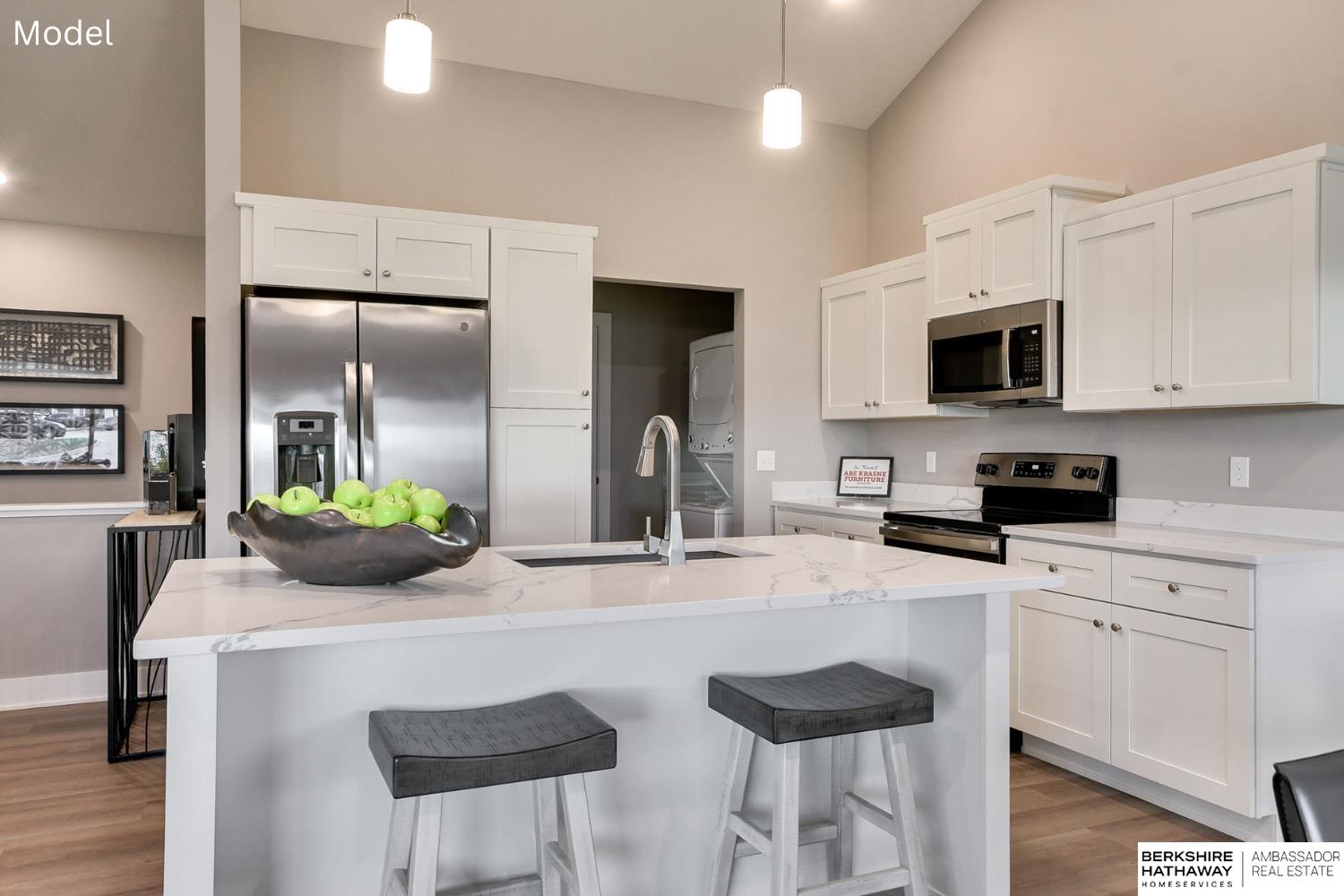 Model Home Not for Sale. Welcome to The Villas of Piney Creek 2 by Omaha Easy Living, ideally located near 199th & Blondo Parkway. These thoughtfully designed villas feature quartz countertops throughout, a huge walk-in pantry, and all appliances included—even the refrigerator, washer, and dryer. Personalize your home with Pick Your Palette, offering designer finishes at no extra cost. Enjoy ZERO-entry lot options for easy accessibility. A basement finish is optional (not included in price or square footage). Now featuring black hardware finishes and composite sink upgrades! Note: Model home is not for sale. Agent has equity.